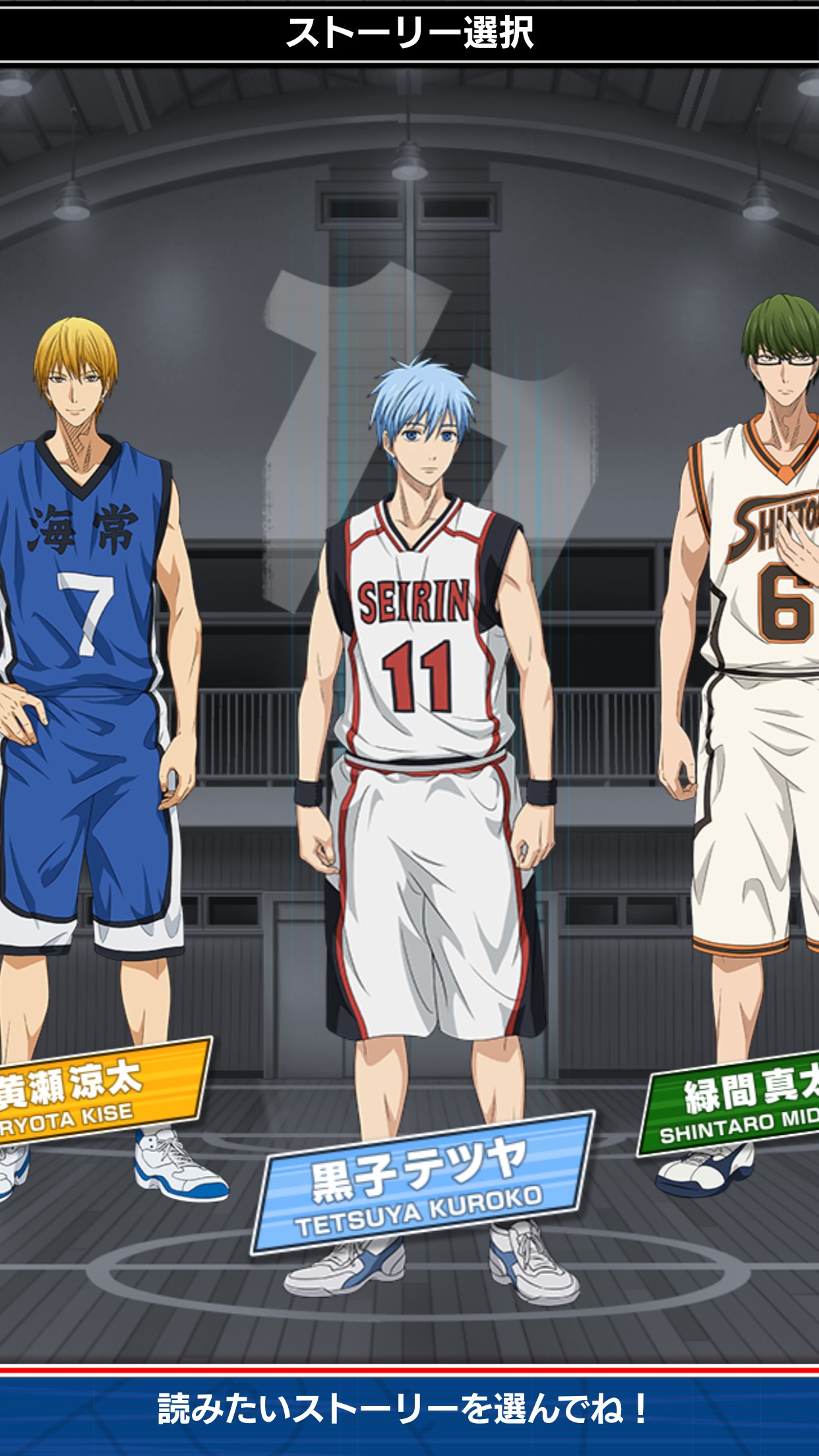 このゲームアプリのストーリーは、「黒子テツヤ」「黄瀬涼太」「緑間真太郎」3人のルートがあり、選んだ主人公の視点でストーリーが展開していきます。大人気漫画「黒子のバスケ」では、主人公の「黒子テツヤ」の視点でストーリーが展開していきましたが、「黒子テツヤ」以外の「黄瀬涼太」「緑間真太郎」の視点でストーリーを読むことが出来るなんで感激です!大人気漫画「黒子のバスケ」では見ることが出来なかった「黄瀬涼太」「緑間真太郎」や、その仲間たちの新たな一面が見れるのではないかと、わくわくしてしまいます。もちろん、「黒子テツヤ」視点で展開されるストーリーも「黄瀬涼太」「緑間真太郎」視点のストーリーに負けてはいません。大人気漫画「黒子のバスケ」では見ることが出来なかった「黒子テツヤ」とその仲間たちの新たな一面、熱いストーリーを見せてくれます!