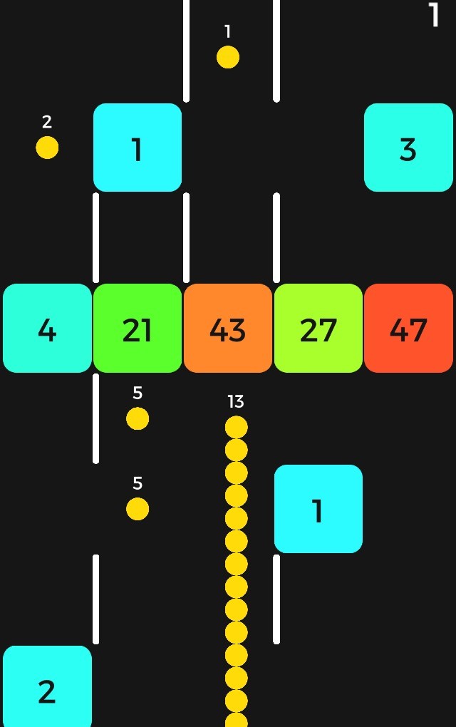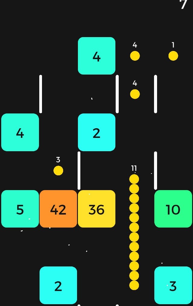 画面上に落ちている数字の書かれたボールを拾うと数字の分だけボールが追加され、画面上に出現する数字が書かれているレンガを壊すと、数字の分だけスコアが加算されます。
