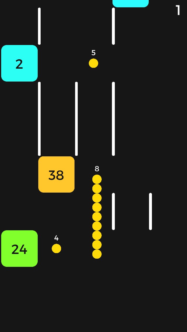 レンガを壊すにはただぶつかりに行けばいいだけですが、書かれている数字の数だけボールが必要で、ボールを消費してレンガを壊していきます。