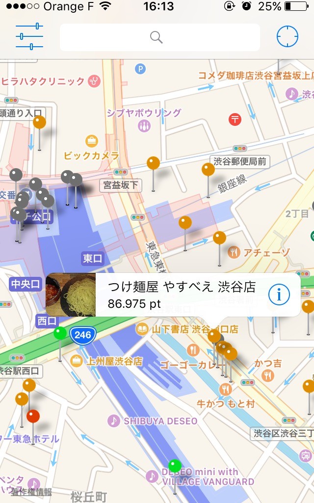 グルメ本に、紹介しているお店が記載されている地図が付いているように、そういった地図アプリが配信されていて、お店を見つけてから地図で探すのではなく、地図でお店を探すことが可能です。