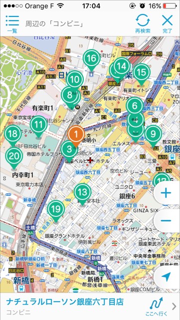 目的地に案内してくれる地図アプリはたくさんありますが、トイレやコンビニなど、今すぐに行きたい場所を現在地周辺で検索するのに適しているのが、『地図マピオン』です。もちろん、目的地までのルート検索も可能です。