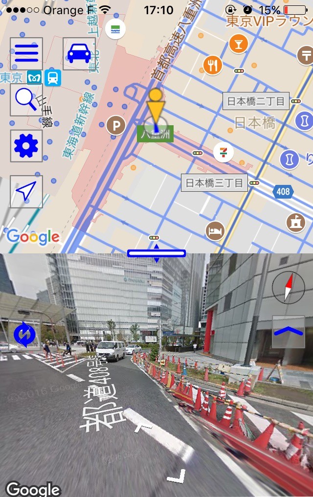 平面上の地図と、ストリートビューを同時に表示することのできる地図アプリです。