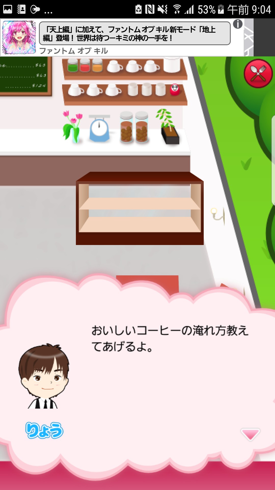 簡単操作でカフェ経営、まったり農園、店を大きくしていくとキャラクターのドラマもすすんでいくよ