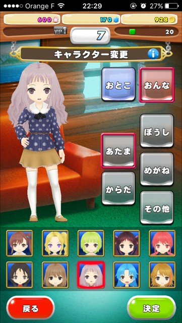 主人公の着せ替えを楽しむ