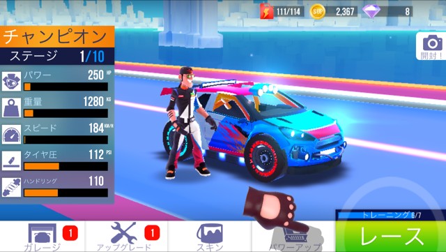 レースに参加して手に入れたコインを使って、マシンのカスタマイズが可能です。パーツごとのアップグレードはもちろん、『スキン』ではマシンの色を変更することができます。