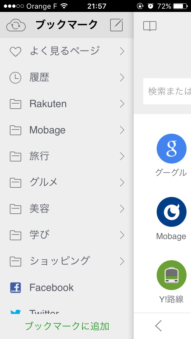 よく使う機能だからこそ、使いやすさが重要になってくるブックマークですが、【ドルフィン ブラウザ 】はスワイプするだけで簡単にブックマークを表示させることができます。さらに、他の端末の【ドルフィン ブラウザ 】のブックマークや、パソコンのChromeやFirefoxのブックマークを同期することも可能です。
