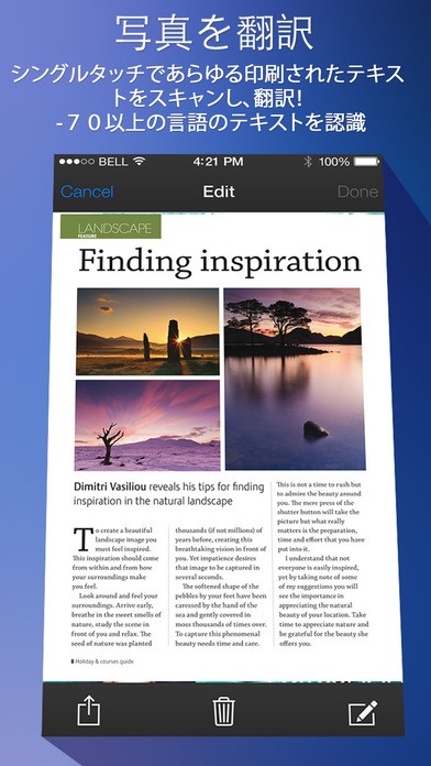 「無料画像翻訳」・写真に撮るだけでドキュメントを翻訳してくれるアプリ
