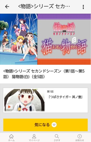アニメ<物語>シリーズセカンドシーズン猫物語(白)つばさタイガーも配信されています。ダウンロード後は、検索機能を使って猫物語(白)の全5話を楽しみましょう。他にも、今まで見逃してしまい気になっていたテレビ番組やアニメなどをアプリを使って見ることが可能です。