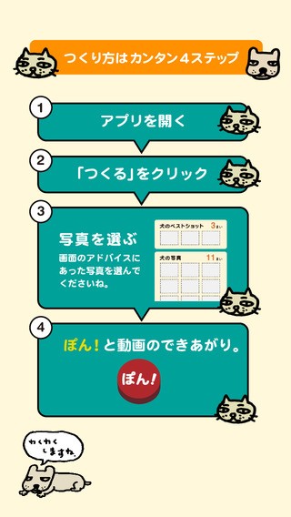 ぜひ一度、スライドショー作成アプリ「わが輩は、犬」思い出ぽん!を試してみて下さい。