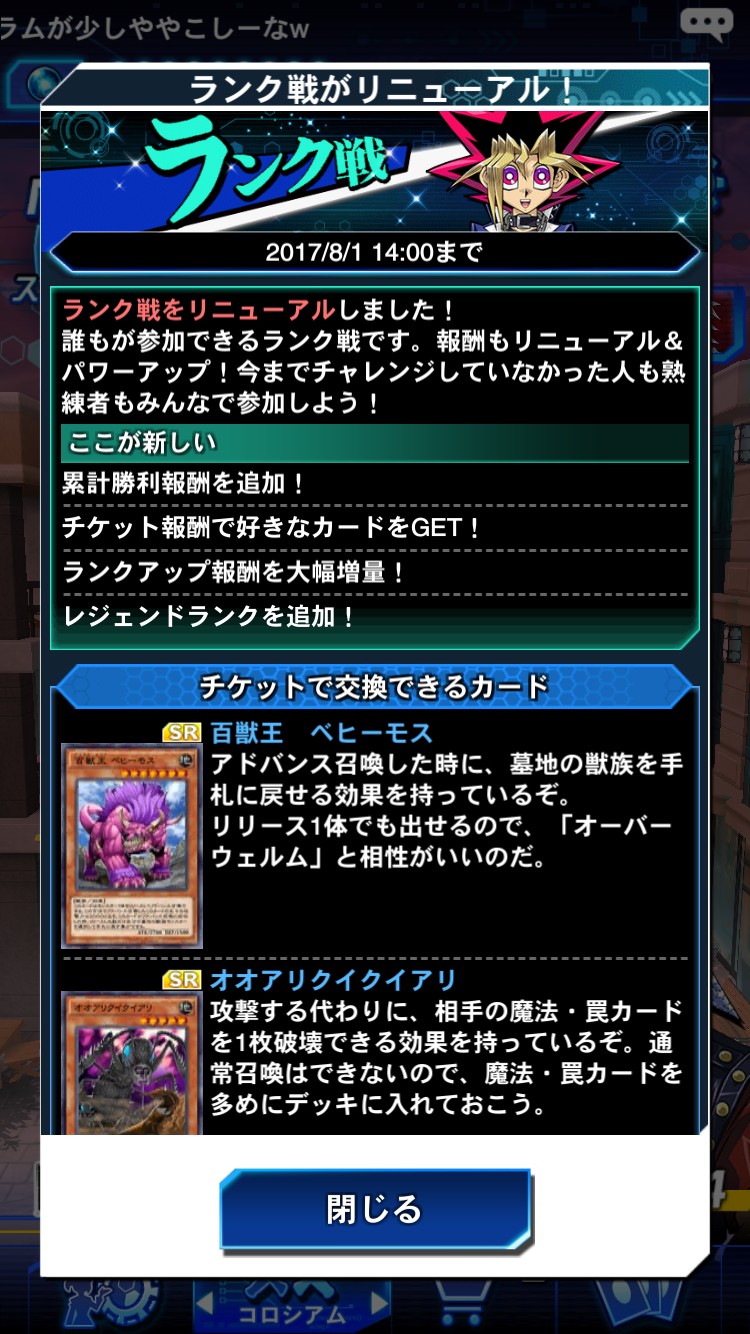 遊戯王の醍醐味である対戦機能ですが、今最も熱いのは「ランクマッチ」です。各プレイヤーごとに合わせたランクのプレイヤー同士で対戦が可能。ランクは「ルーキーランク」〜「デュエルキング」の6段に分けられているので、自分の実力に合わせて楽しむことができます。さらにランクマッチが新たにリニューアルされ、今までの昇格報酬に加えて好きなカードと交換できるチケットも貰えちゃいます!沢山報酬をゲットしてデュエルキングを目指しましょう!