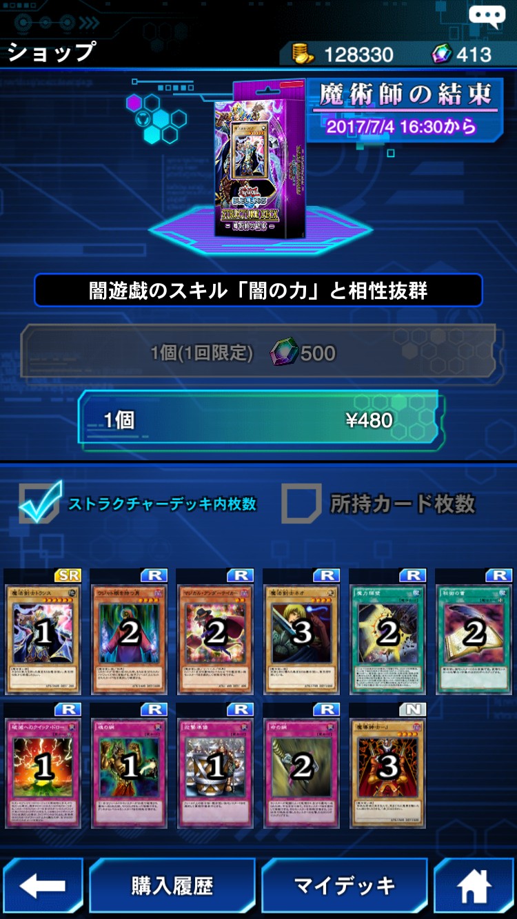 それでもデッキを組むのが苦手だなと思う方には、あらかじめデッキが構成されている「ストラクチャーデッキ」の購入をオススメします。購入には1デッキ480円かかりますが、なんと、1回限り500ジェムで購入できちゃうお得なキャンペーン付き!無課金でプレイを考えている方でも十分楽しめるゲームとなっております!
