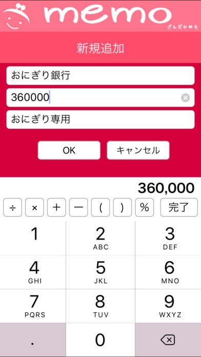 また、引き出しや引き落としがあれば、簡単に残高情報を更新することができます。書き換えを行った時の履歴はきちんと残るので、いつ、どれだけの支払いをしたのか、引き出したのかも一目でわかります。項目を開くと電卓機能が付いているので、簡単操作で残高を記録できます。
