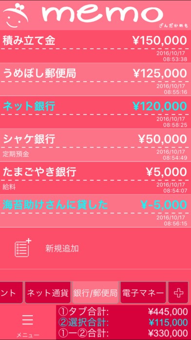 「残高メモ」は、家計簿とは違うお金の残高を管理することに特化したアプリです。