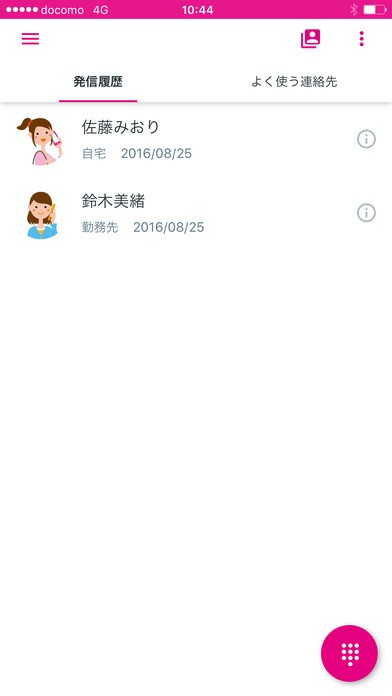 通常のアドレス帳のように、連絡先を登録することができます。「発信履歴」や「よく使う連絡先」を登録できるので使いやすいですね。