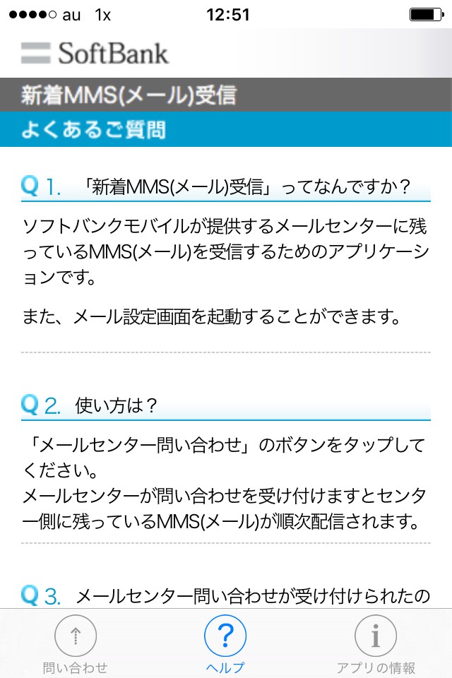 「新着MMS受信」はメールセンター問い合わせのボタンをタップするだけで、保存されているメールを再度受信することができるアプリです。とてもシンプルなので、使い方に困ることはないでしょう。ソフトバンクユーザーであるなら、とりあえずスマホに入れておきたいアプリとなりますね。