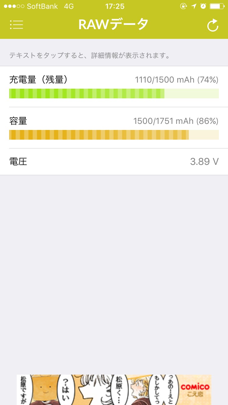 RAWデータでは充電の残量と容量・電圧まで見られるので、より詳しく知る事ができます。