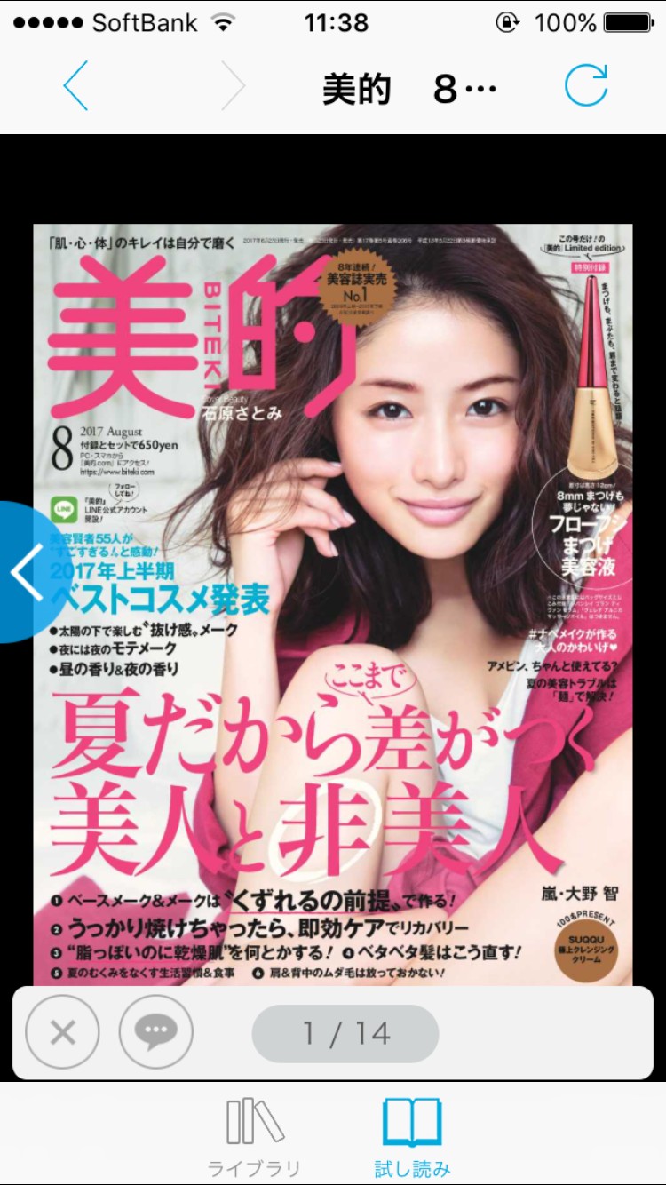 よくスマホで文字を読む電子書籍系は苦手……という意識を持っている方もいるようですが、『美的』は雑誌をめくるように見られる上に写真をズームすることもできますので読みやすいです。