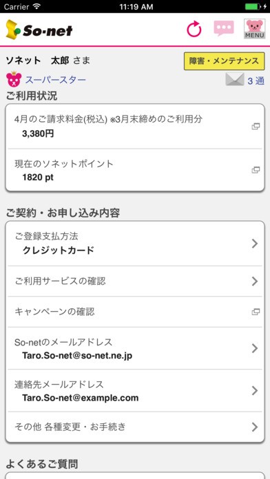 アプリを起動するだけであらゆる情報にアクセスが可能なので、So-netユーザーはとりあえずアプリをインストールしておいて損はないでしょう。忘れがちなソネットポイントも確認できるので、貯まったポイントを有効に活用することができますね。