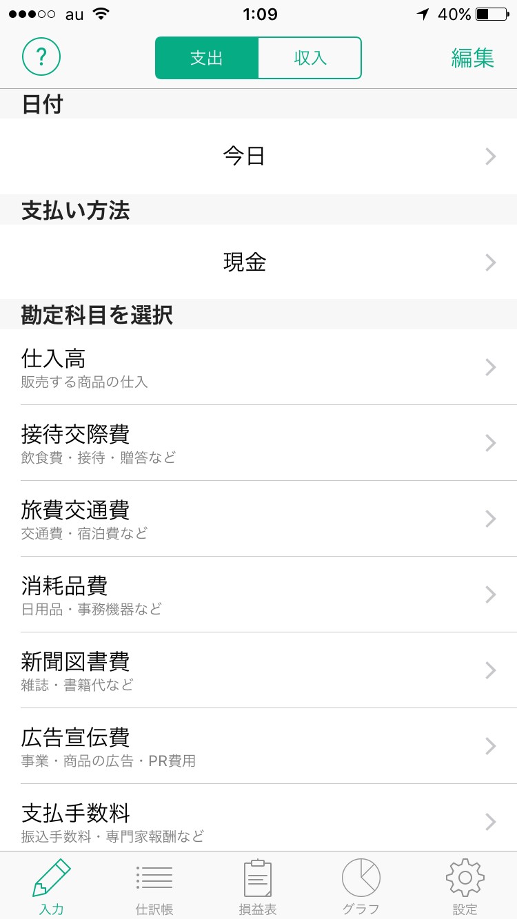 デザインもシンプルで直感的ですので、記帳の方法に迷うということは起こりません。