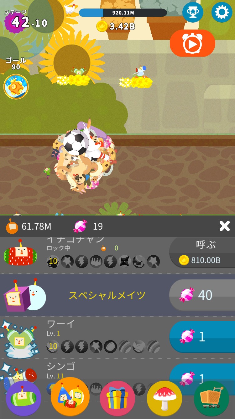 キャンディは課金アイテムだが、プレイ中に集まるため1日に100個くらいは集めることも可能だ。スペシャルメイツはプレゼントと同様に、一度取得すると永続的に手伝ってくれる。スペシャルメイツは全部で5人いて、他のメイツと同様にレベルアップも可能だ。ただし、レベルアップにもキャンディが必要になる点に関しては注意して欲しい。