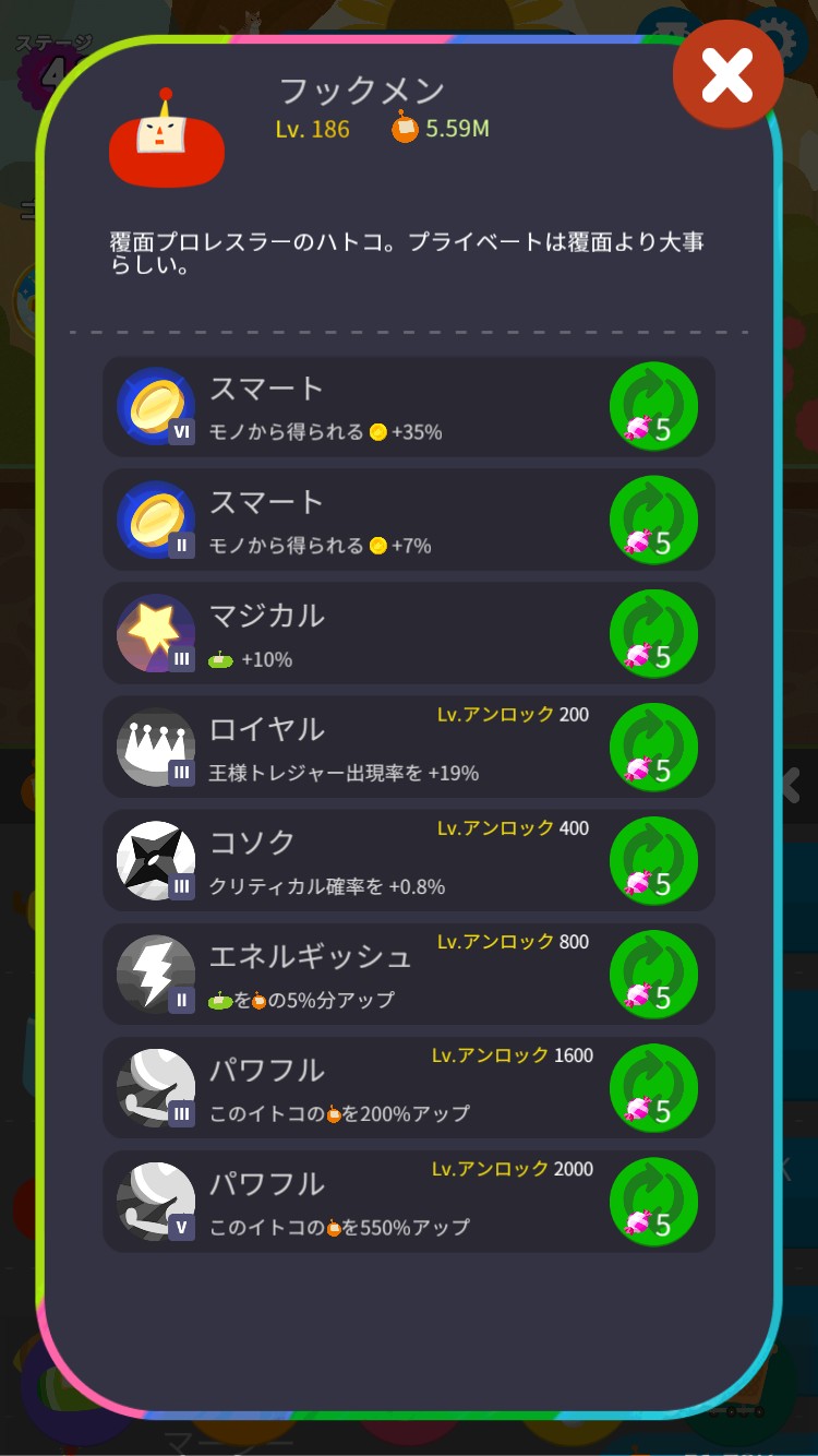 メイツは、到達したレベルに応じて特殊効果を解放することができる。この特殊効果は獲得できるコインの量が増えたりなどとイイコト尽くめだ。
