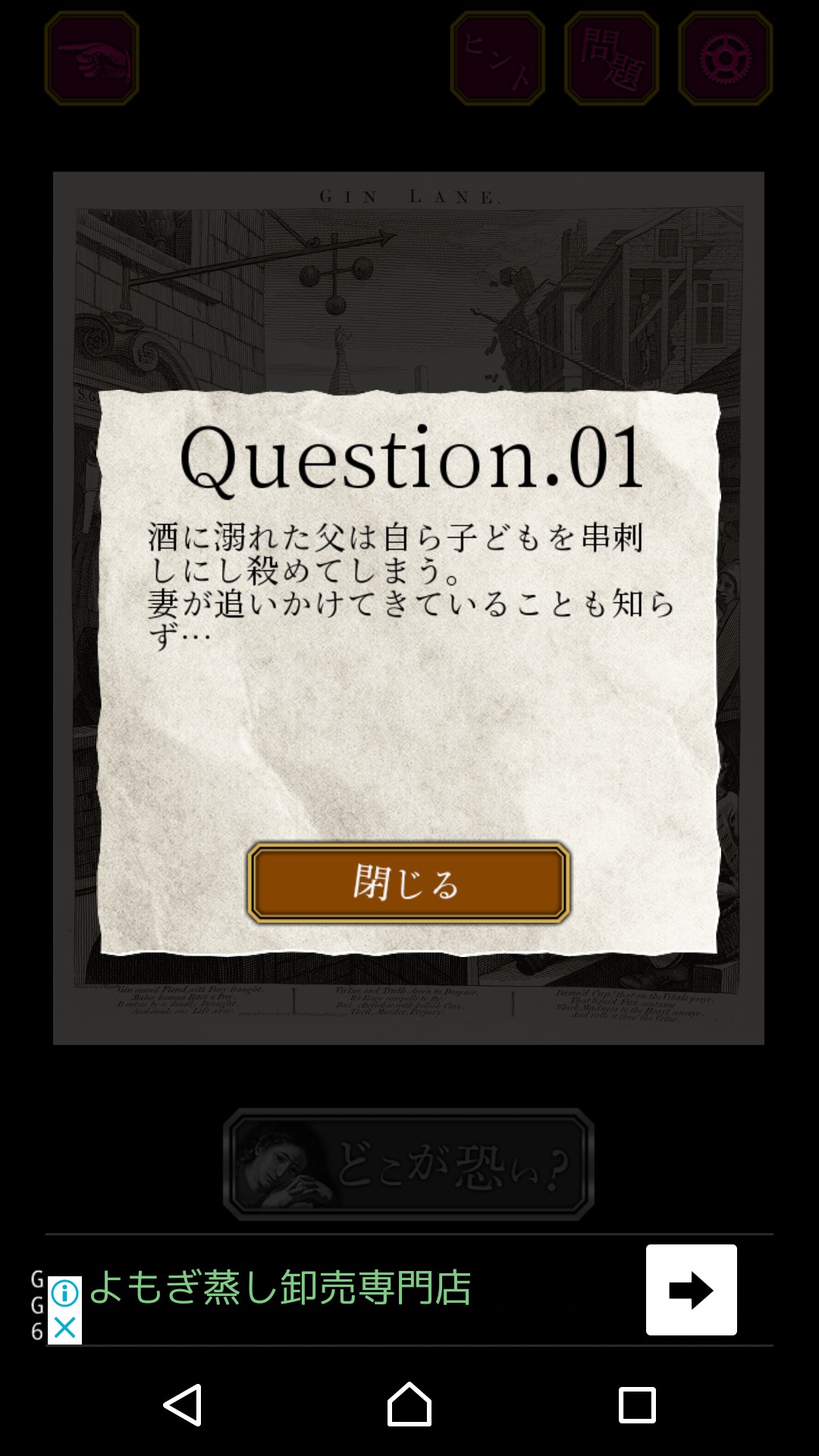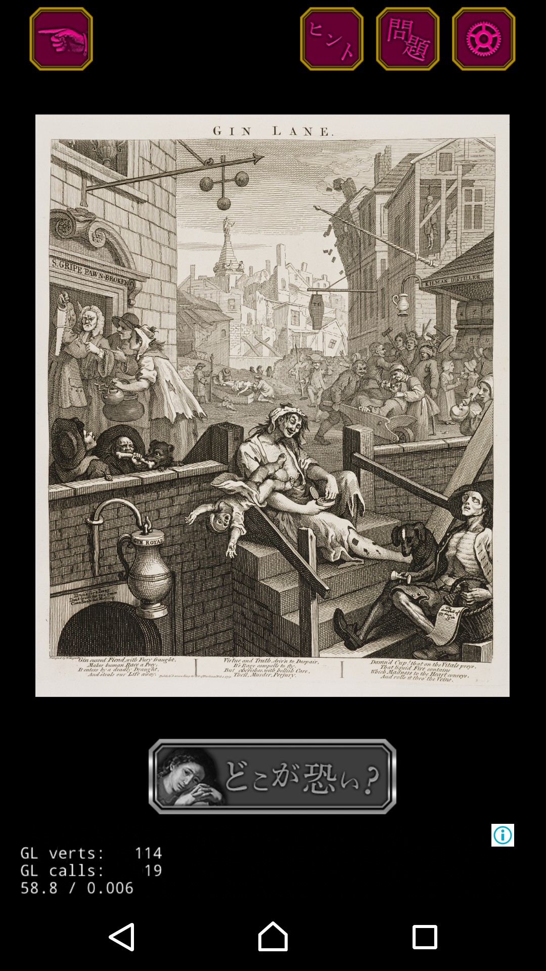 このアプリの使い方はとても簡単です。AppStoreもしくは、GooglePlayからインストールしたら、まずはスタートボタンをタップ。最初は「File.01ジン横丁」から始めます。この絵画の解説をよく読んで、該当する恐い箇所を探していきましょう。答えが分かったら「ここが恐い!」をタップ。正解なら次の謎へ進むことができ、不正解なら再挑戦でもう一度挑戦することができます。答えがどうしても分からない場合は、答えを見ることもできます。ステージが上がるごとにどんどん難易度もアップ。問題ごとにヒントを見ることもできるので、ヒントを駆使して謎を解いていきましょう!