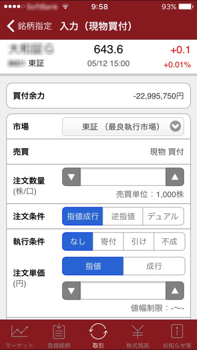 また、登録銘柄から株を発注することができるのも、便利な機能の一つですね。