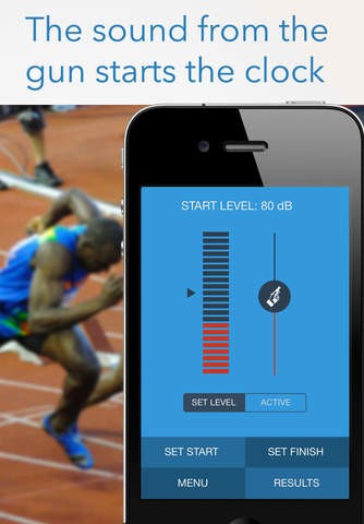 ゴールのフィニッシュラインにデバイスを設置し、誰かがピストルでスタートを合図すると、その音にアプリが反応してタイムの計測がスタートします。