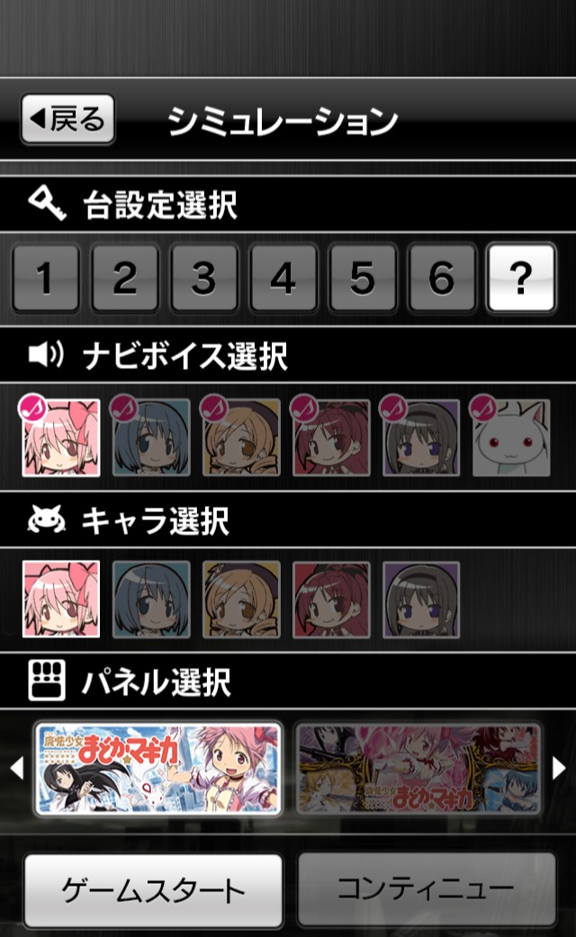 こちらのアプリは遊び始める時に設定を選ぶことができます。もちろんホールで打つ時と同じように設定が分からない状態にもできます。