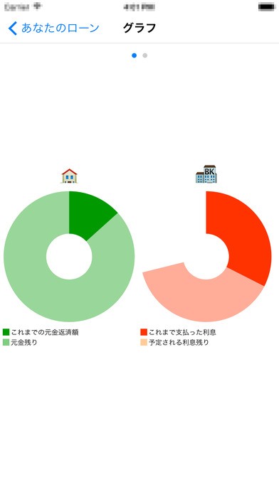 さらに、下記の画像のように、グラフで返済状況やこれまで支払った利息、これから支払う予定の利息残りを一目で確認することができます。