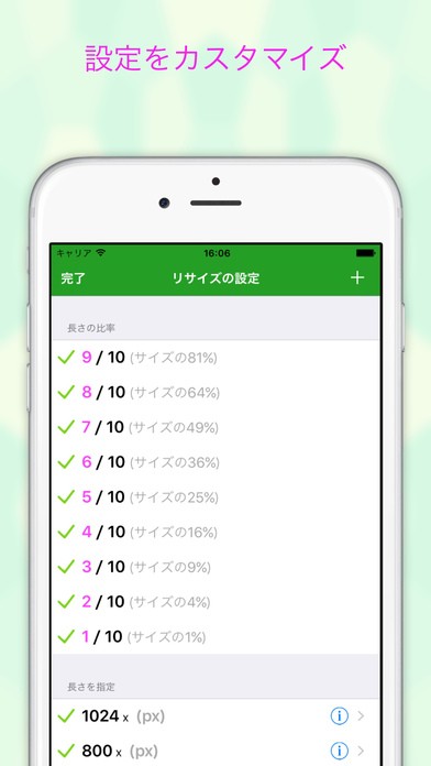 また、10段階用意されているサイズを選択してリサイズすることが可能です。また、その段階のサイズの中に欲しいサイズがないときには、任意の縮小サイズをあらためて登録しておくことでサイズを選択できるようになります。さらに、登録できるのは縮小したあとのサイズだけではありません。切り取りのサイズもあらかじめ登録しておくことが可能です。