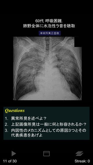 基礎トレーニングでは、各領域30症例の画像診断に関する問題が、クイズ形式で勉強することができます。