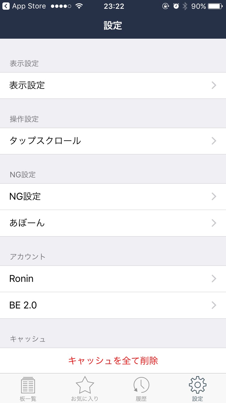 こちらでは、2chをさらに快適に閲覧するための詳細設定を選択することができます。不快な書き込みを非表示にするあぼーん機能は、こちらから設定できます。また、NG設定として、名前、ID、メール、単語などを設定することができるので、自分の読みたい掲示板を絞り込んで読むことができますよ。