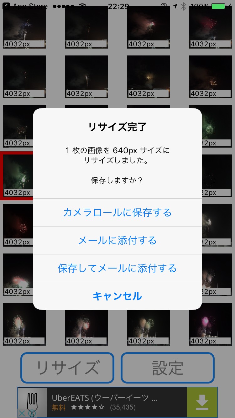 あとはカメラロールに戻り、リサイズしたい写真を選択して、