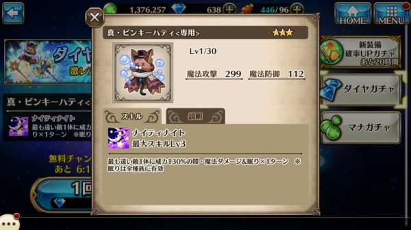 無料チャンス!なんとヴァルキリーコネクトでは、2016年7月現在、ダイヤガチャが30時間に1回無料で回せるのだ。