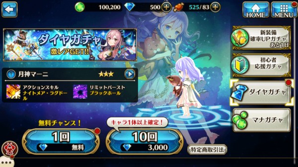 7 ガチャ画面に行き、ダイヤガチャを無料で回す