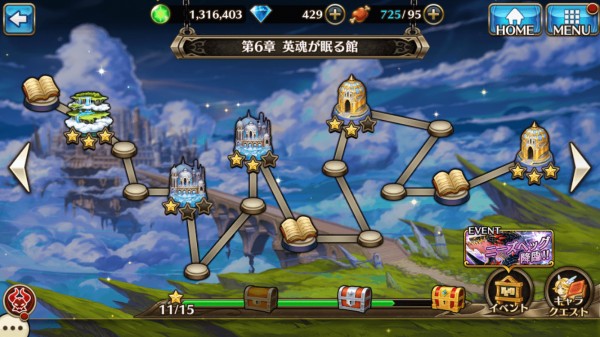 クエストをクリアすると、味方の戦闘不能キャラ数に応じて星がもらえる。この星を集めると、各章毎にダイヤが180個もらえるぞ。