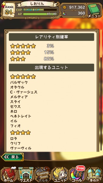 ★5が出る確率は5%となっている。リセマラ10回に、1回は出る確率だ。★5ユニットはどれも強力なユニットなので、出るまで粘る価値はあるだろう。