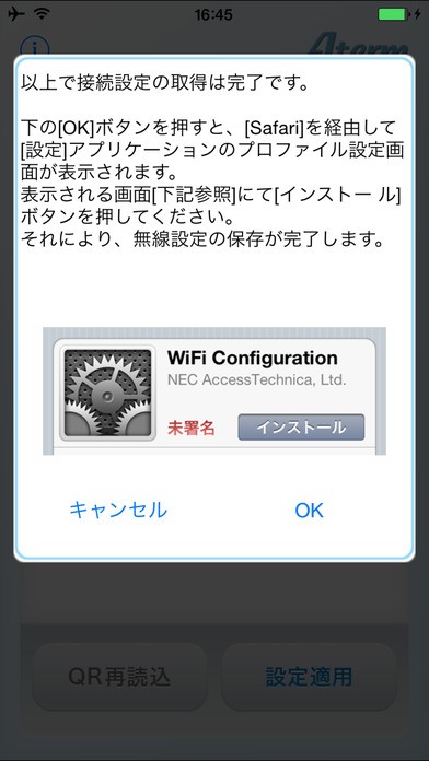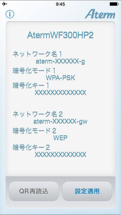 Atermシリーズの親機のWi-Fi接続が簡単に出来るアプリです。