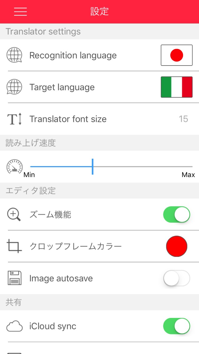 翻訳をする箇所が決まったら「OCR」ボタンを押します。すると先ほど選択した文章がテキスト化されます。この時にテキスト化された文章を編集することができます。後は「変換」のボタンを押すだけで完了です。音声の読み上げる速度とテキストの文字の大きさは設定から変更することができます。