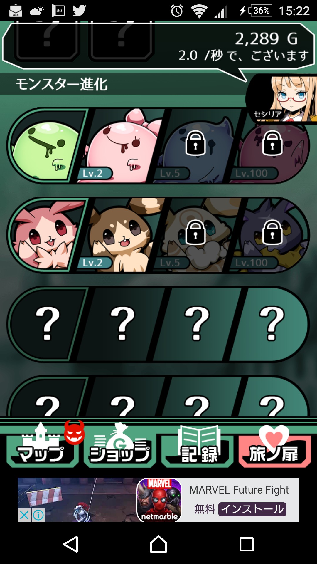 画面下にあるショップをタップすると、アイテムや増築、モンスターの強化などが出来るようになっています。