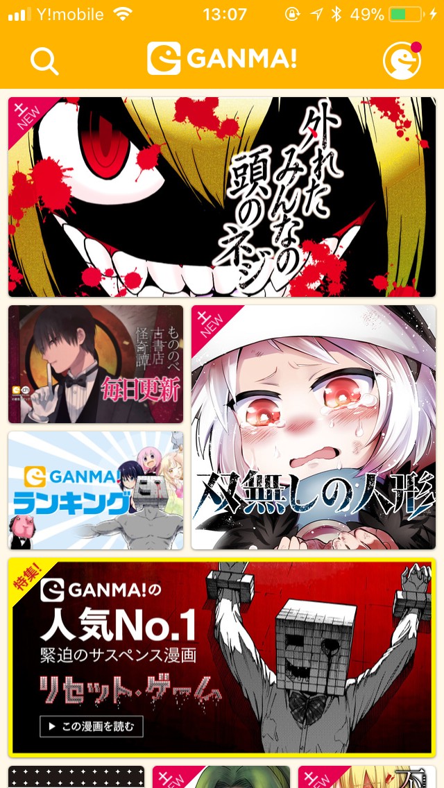 「GANMA!-オリジナル漫画が制限ナシで読み放題」はいつでも好きな時に無制限で一気読みできるので思う存分楽しめます!アプリを起動すると、画面全体に更新されたばかりの漫画やおすすめ漫画が並びます。