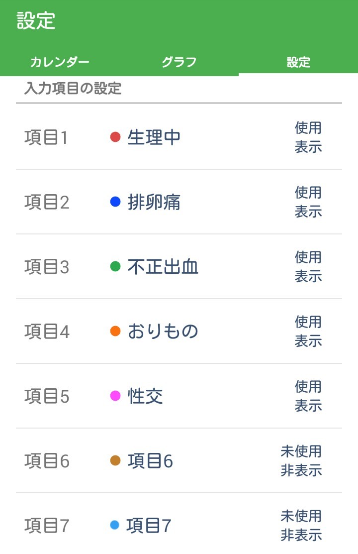 項目は更に追加で5個設定できますので、例えば排卵日、採卵と言った不妊治療にまつわるデータなどを自由に設定することができます。