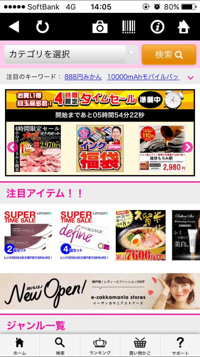 アプリトップページの「ショッピング」をクリックすると、ヤマダ電機で取り扱っている商品を購入することができます。足を運ばなくても好きなときにWEB上で買い物が楽しめるので、大きくて重い商品も気軽に購入可能です。
