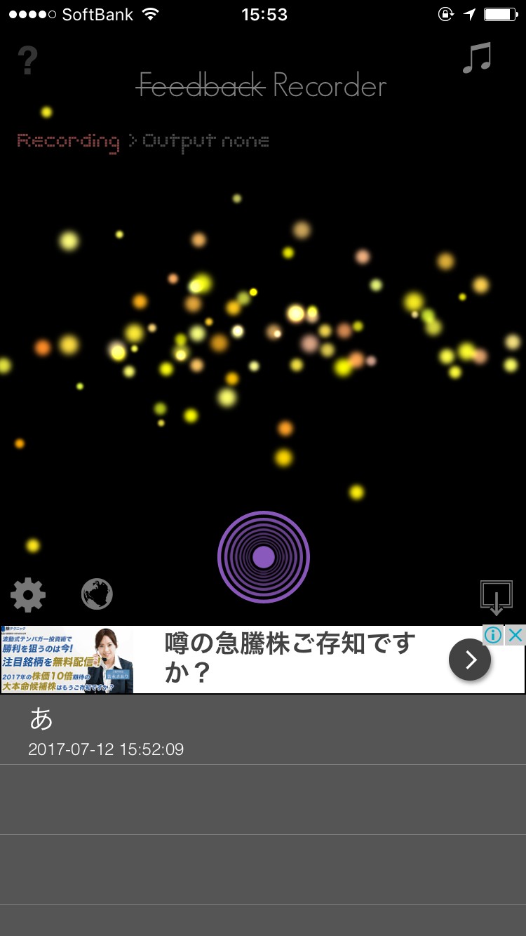 「Feedback Recorder(フィードバック・レコーダー)入力音声が聴こえるレコーダー」は音に合わせて画面にカラフルなデザインが現れます。