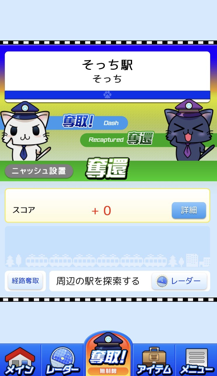 「駅奪取」は、操作が簡単な無料ゲームアプリです。「駅奪取」のキャラクター、かわいい猫型ロボットの「ニャッシュ」と共に日本全国の駅を集めることができます。最寄りの駅から旅先にある駅など出かける先の駅を集めてスコアを伸ばすことで称号をもらうことができます。またライバルも出現し自分の駅を奪われたり逆に奪ったりすることもできます。サポートをしてくれる「ニャッシュ」は体力が減ってしまうと駅を守れなくなっちゃうのでたまにご飯をあげたりして回復してあげましょう。