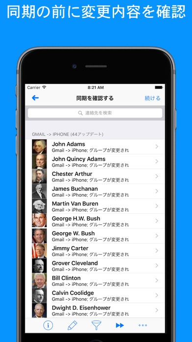 どこにいても、Gmailの連絡先にすぐアクセスできるように、GmailとiPhoneの連絡先を迅速かつ容易に同期させることができます。GmailとiPhoneどちらかの連絡先に加えられた変更をマージすることで、「2ウェイ同期」を実現しています。