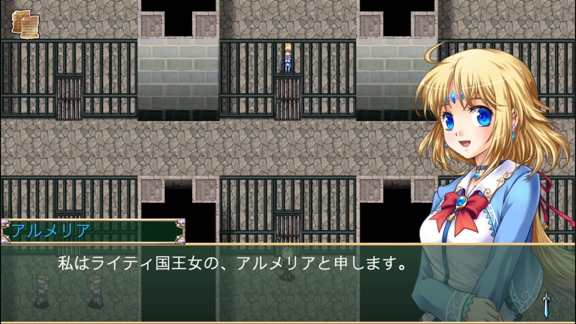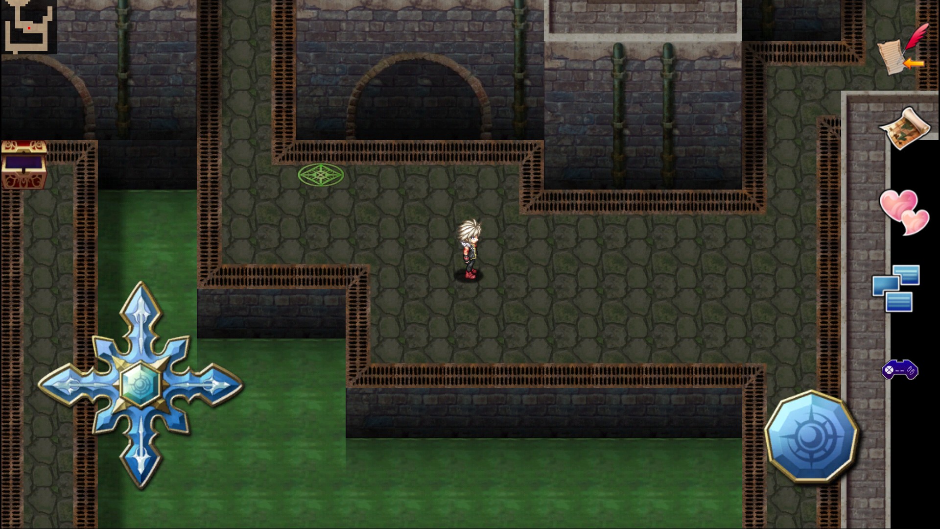 また、画面右側には決定ボタンが表示されるので、操作キーで移動して決定ボタンを押すことで会話したり宝箱を開けることが出来ます。