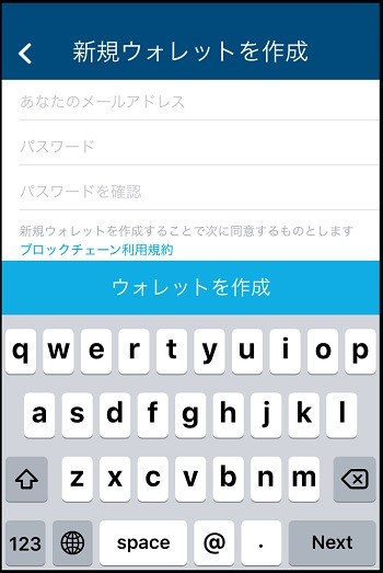 上の画面で「ウォレットを作成」ボタンをタップすると次の画面が表示されます。