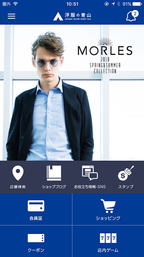 洋服の青山アプリを登録するだけで、店舗でもオンラインでも使えるお得な情報やクーポンを手にすることができます。